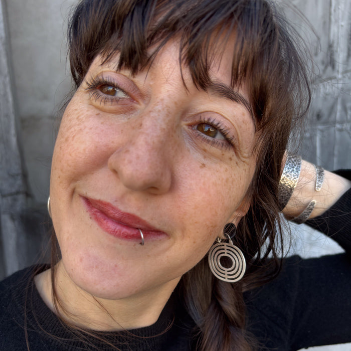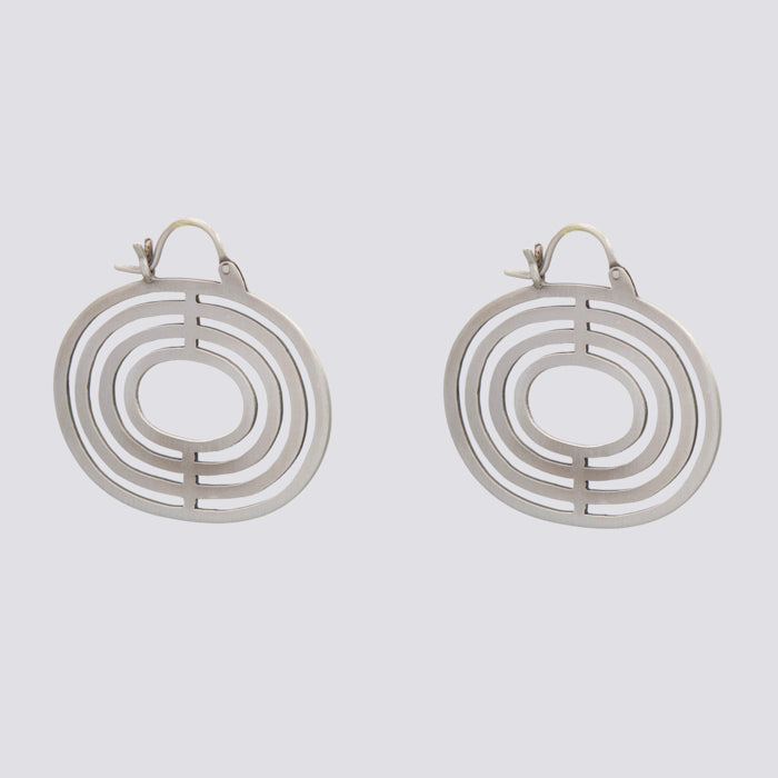 Striking cut out rainbow hoop earrings. Graphic, fun.