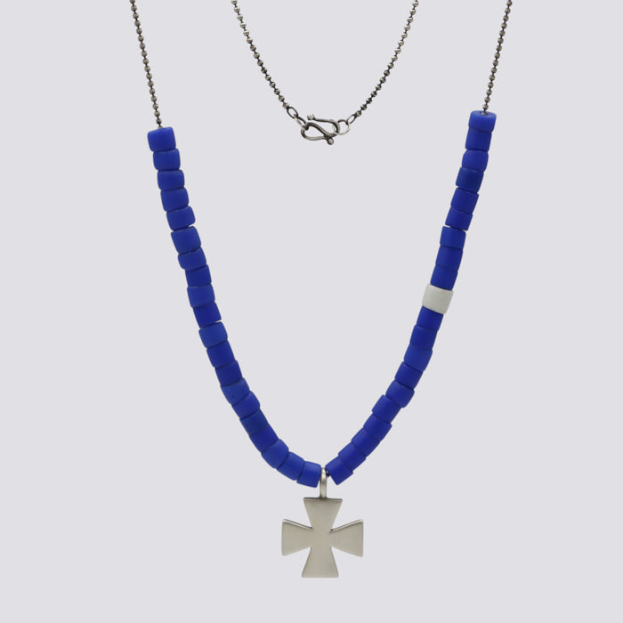 One of a kind antique African glass bead necklace with sterling silver pendant from the Jane Diaz archives. The antique and vintage glass beads on this necklace were produced in Czechoslovakia and traded in Africa.