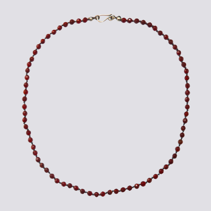 Knotted carnelian necklace with sterling silver clasp. Hand knotted on silk.