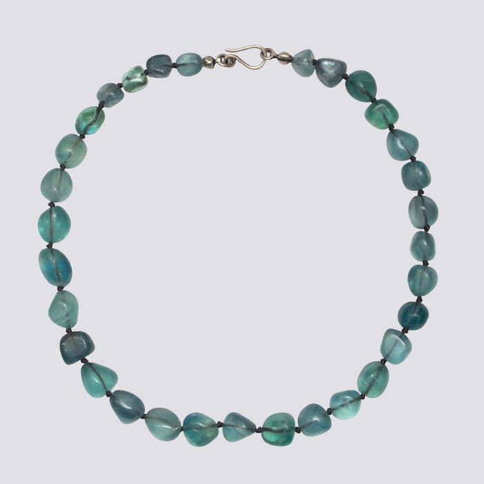 Fluorite necklace with sterling silver clasp. Hand knotted on silk.