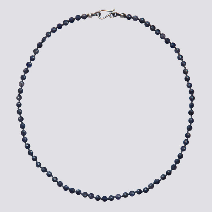 Knotted iolite necklace with sterling silver clasp. Hand knotted on silk.