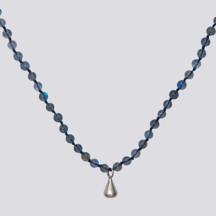 Knotted labradorite necklace with sterling silver clasp and pendant. Hand knotted on silk.