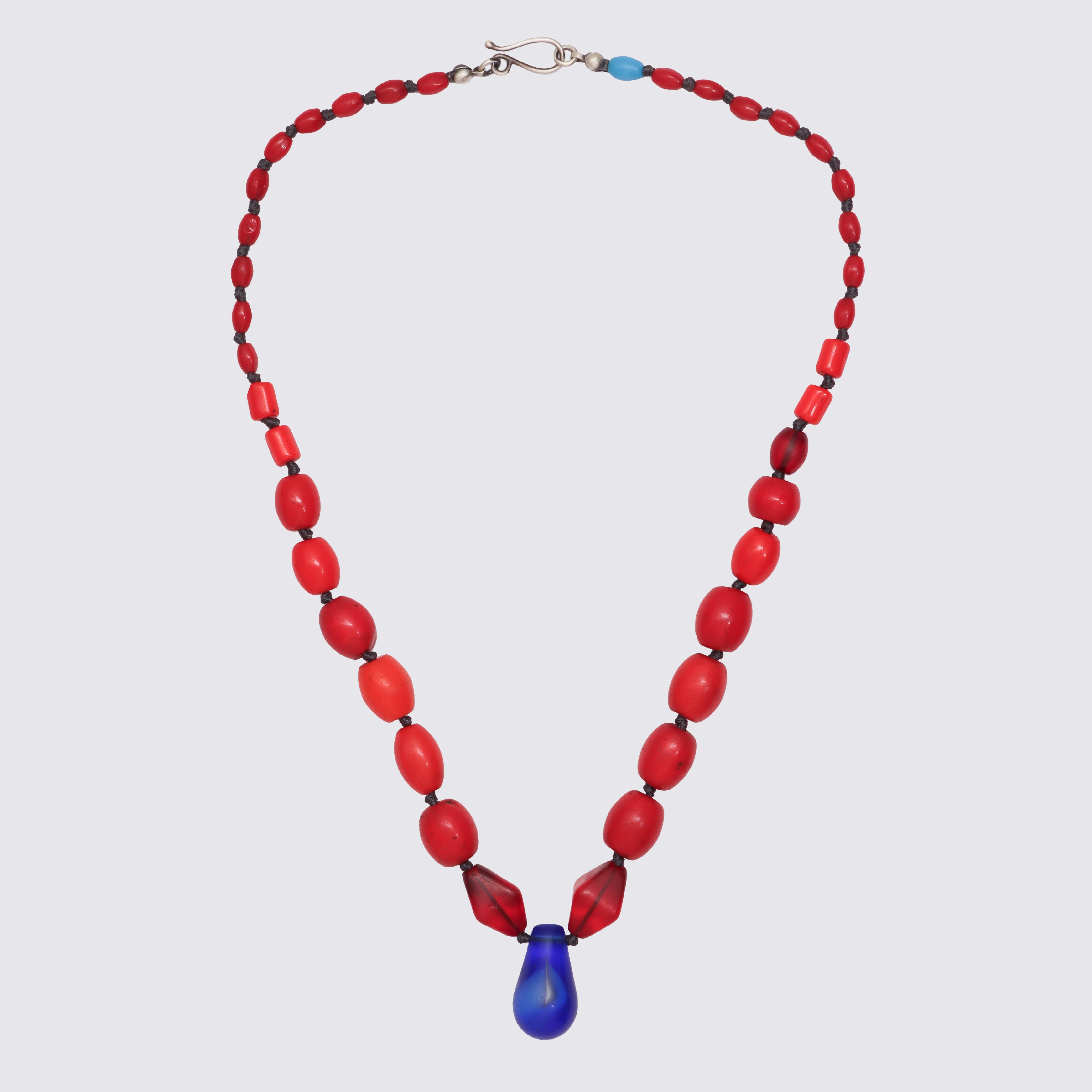 One of a kind antique African glass bead necklace with sterling silver clasp. The antique and vintage glass beads on this necklace were produced in Czechoslovakia and traded in Africa. Hand knotted on silk.