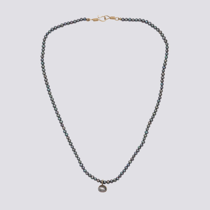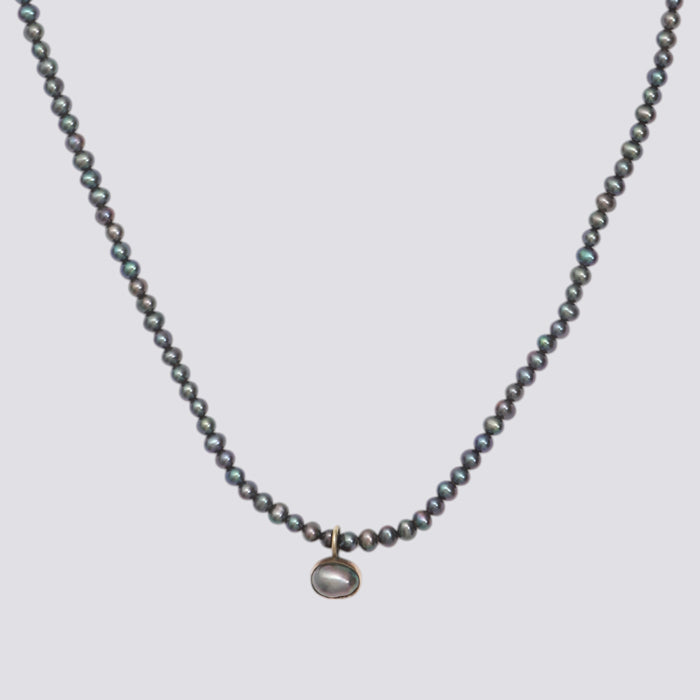 Grey pearl necklace with 10K gold clasp and pendant.