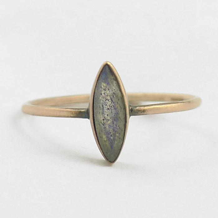 Faceted Stone Marquis Solid Gold Stacking Ring